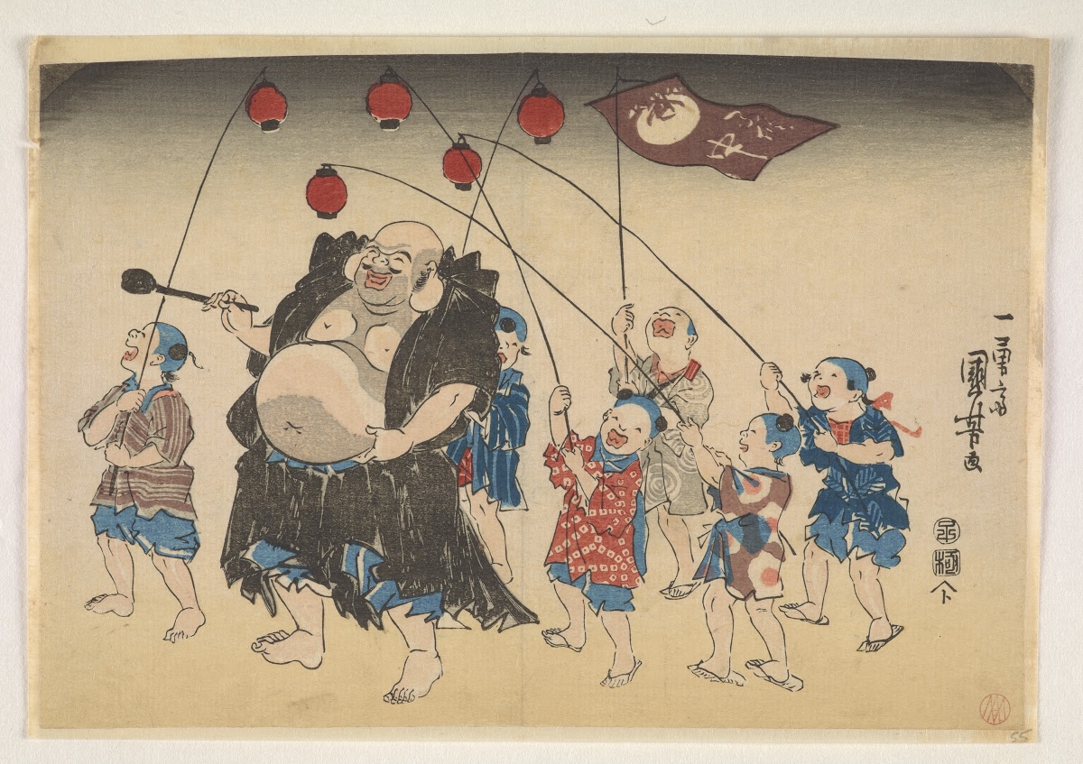 remembered with such respect as Hotei. You will find in every house, statues of